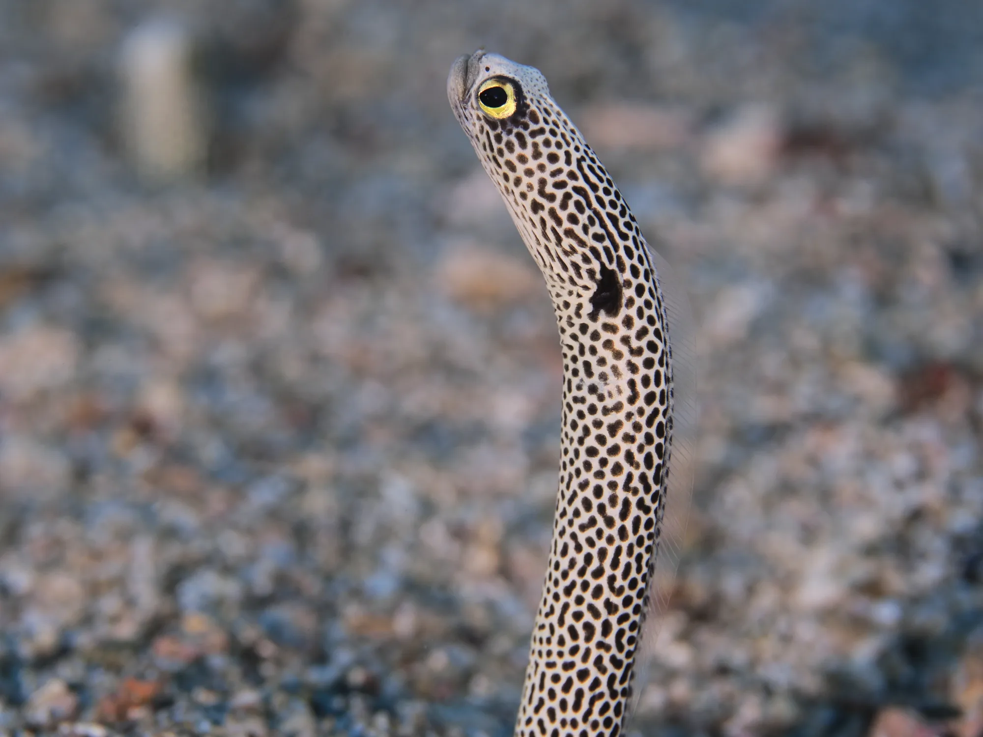 チンアナゴって近寄ると直ぐに穴に隠れるんですが、こちらのチンアナゴ、人馴れして寄ってもダイバーを無視してます(笑)